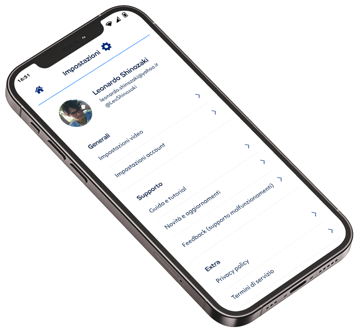 Come funziona la nostra app? Le impostazioni sono la colonna portante. Potrai imparare facilmente a gestire le impostazioni video e a darci dei feedback in caso manchi qualcosa o ci siano malfunzionamenti.